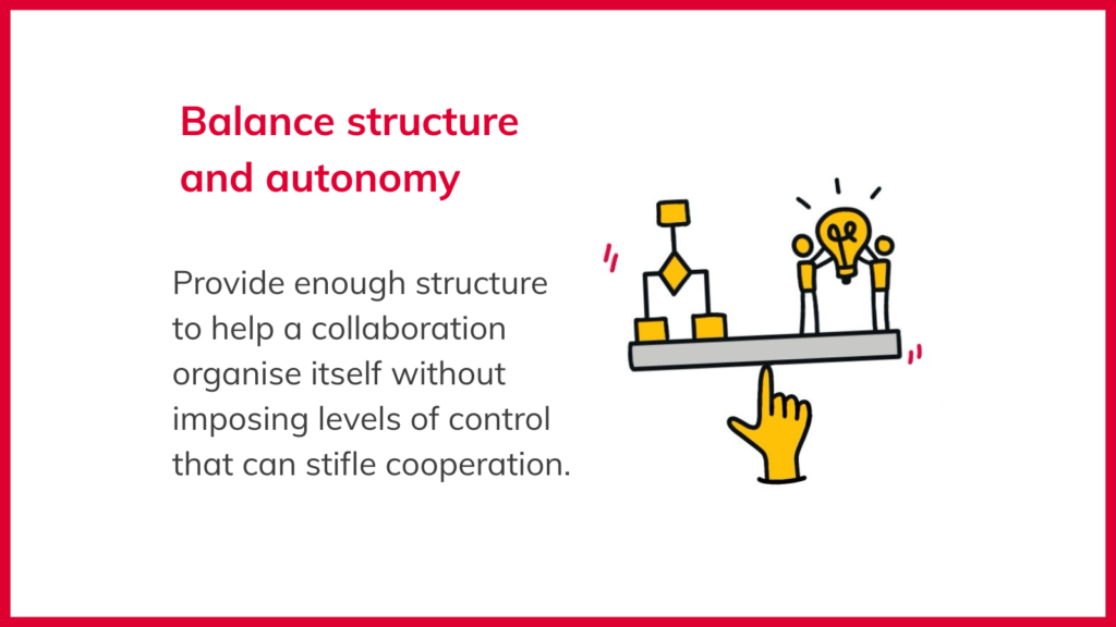 1. Balance structure and autonomy: Provide enough structure to help a collaboration organise itself without imposing levels of control that can stifle cooperation.