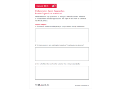 This resource was adapted from Collaboration-Based Approaches, by Graham Martin and Mary Dixon-Woods, part of THIS Institute’s series ‘Elements of Improving Quality and Safety in Healthcare’.