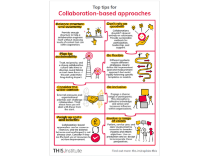Clear, practical microlearning resources on using collaboration-based approaches in healthcare improvement. Includes key features, planning questions, and top tips to support improvement efforts.